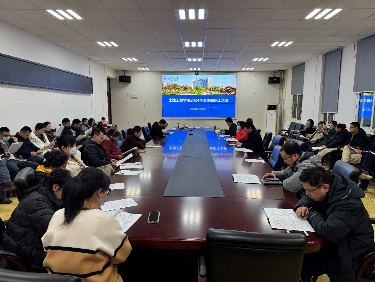 12月18日晚,土地工程學院2024全體教職工大會在南校區東院召開。大會議題是總結過去一年學院各項事業取得的成績、共謀新一年工作計劃和目標,討論通過《土地工程學院目標責任管理與績效考核實施辦法(修訂審議稿)》(以下簡稱《實施辦法》)。大會由學院黨委副書記、工會主席孫翔洲主持。