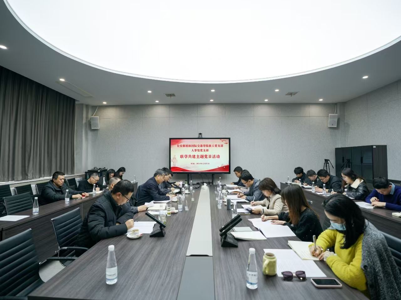 12月31日,長安都柏林國際交通學(xué)院教工黨支部與人事處黨支部在鴻遠(yuǎn)教學(xué)樓四層會(huì)議室開展聯(lián)學(xué)共建主題黨日活動(dòng)。副校長范文、人事處處長李險(xiǎn)峰、學(xué)院黨總支書記趙亮以及兩個(gè)支部全體黨員參加本次活動(dòng)。活動(dòng)由趙亮主持。