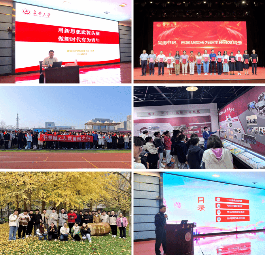 聚焦理想信念教育,匯聚“全員育人”主體鏈。學(xué)院強(qiáng)化思政引領(lǐng),搭建“學(xué)院領(lǐng)導(dǎo)-專任教師-班主任-輔導(dǎo)員”全員育人“大思政”平臺(tái)。學(xué)院黨委書記吳濤為2024級(jí)新生講授“用新思想武裝頭腦,做新時(shí)代有為青年”專題講座暨新生第一課,引導(dǎo)新生筑牢理想信念之基;學(xué)院選聘黨委書記吳濤、院長(zhǎng)邢國(guó)華等32名專任教師擔(dān)任本科生班主任,充分發(fā)揮專業(yè)優(yōu)勢(shì),在專業(yè)教育中涵養(yǎng)新生工匠精神和家國(guó)情懷;組織新生參觀校史館,在港珠澳大橋、珠峰測(cè)量等重大工程中感悟長(zhǎng)大力量,激發(fā)新生愛(ài)國(guó)榮校情懷;學(xué)院舉辦黨的二十屆三中全會(huì)精神專題報(bào)告會(huì)、團(tuán)務(wù)基礎(chǔ)知識(shí)培訓(xùn)會(huì)、新生“入黨第一課”主題教育班會(huì)、“懷報(bào)國(guó)之志 踐愛(ài)國(guó)之行”愛(ài)國(guó)主義教育團(tuán)日活動(dòng)等,引導(dǎo)新生堅(jiān)定理想信念,厚植家國(guó)情懷,樹(shù)立投身“建造強(qiáng)國(guó)”事業(yè)的遠(yuǎn)大理想。