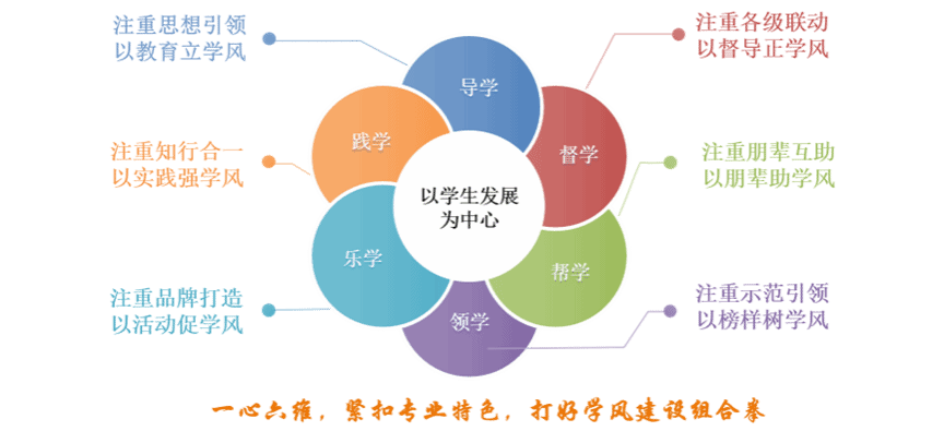學風建設是高等教育高質量發展的重要環節,是提升人才培養質量的基石,更是培育擔當民族復興大任時代新人的關鍵途徑。信息工程學院堅持以習近平新時代中國特色社會主義思想為指導,貫徹落實全國教育大會精神,緊貼學院專業特色,構建“一心六維”學風建設體系,即以“學生發展”為中心,融合“導學、督學、幫學、領學、樂學、踐學”六維,匯聚資源協同育人,構建學風建設共同體,致力于培養具有創新精神、家國情懷和國際視野的新時代卓越人才。