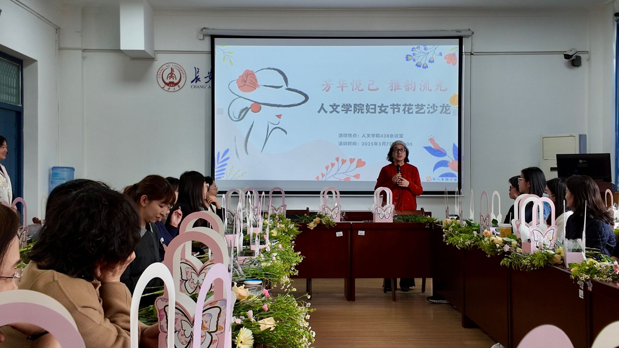 3月7日下午,人文學院工會在學院428會議室舉辦“芳華悅己,雅韻流光”主題活動,學院全體女教職工齊聚一堂,以花藝創作共慶第115個國際勞動婦女節。活動現場花香馥郁、笑語盈盈。人文學院工會主席孫希娟主持活動,并向全體女教職工致以節日祝福。