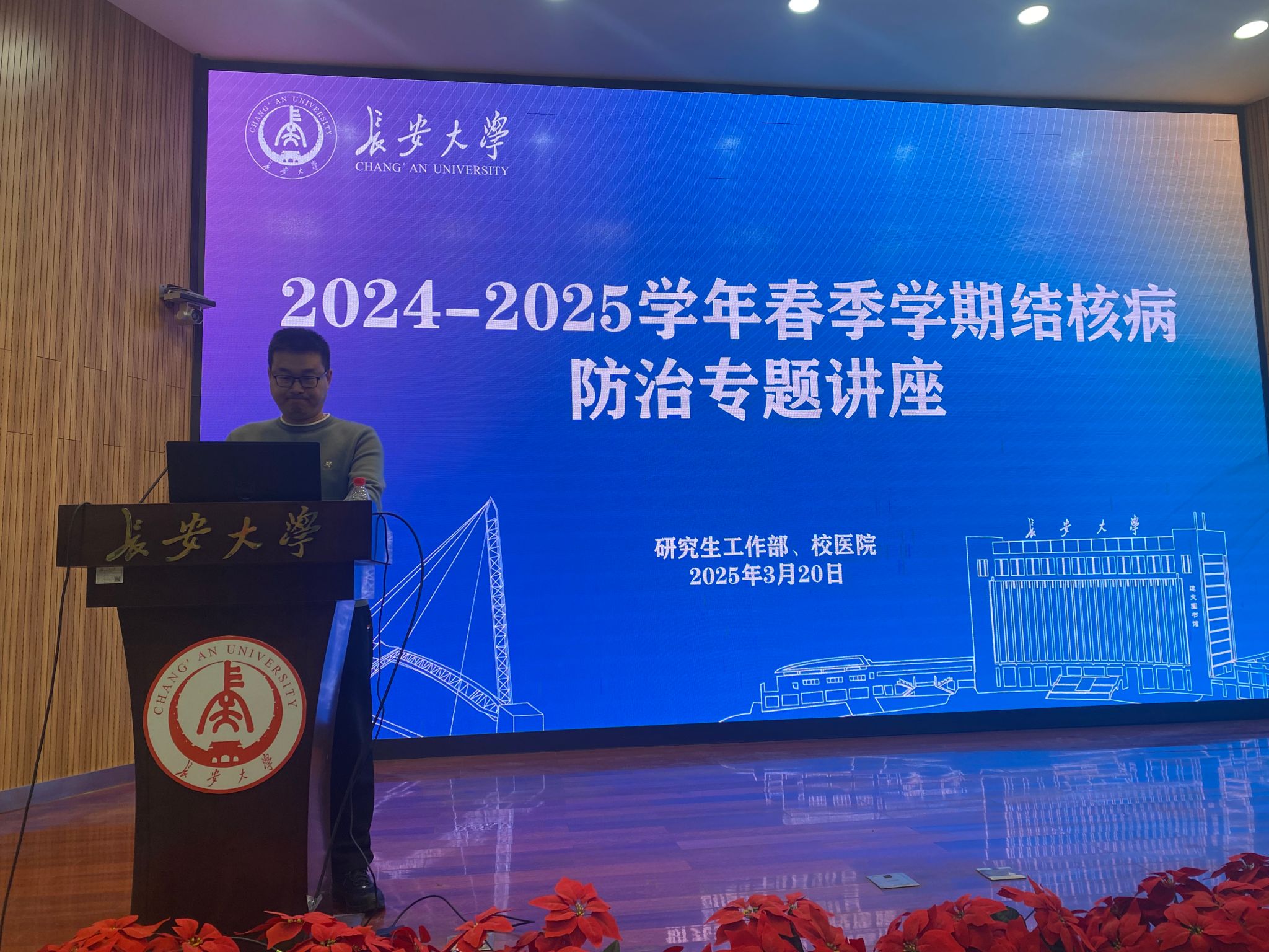 3月19日、20日,校醫院聯合學工部、研工部分別在北校區、南校區開展線上線下結核病防治專題講座。講座由陜西省疾病預防控制中心副主任醫師張路錢主講。張路錢結合高校聚集性生活學習的環境特點,剖析校園結核病傳播鏈與早期癥狀識別要點,引導同學們樹立正確的健康觀念,掌握科學的防治方法。他提示大家,肺結核感染不可怕,早期、規律、適量、聯合、全程用藥很重要。