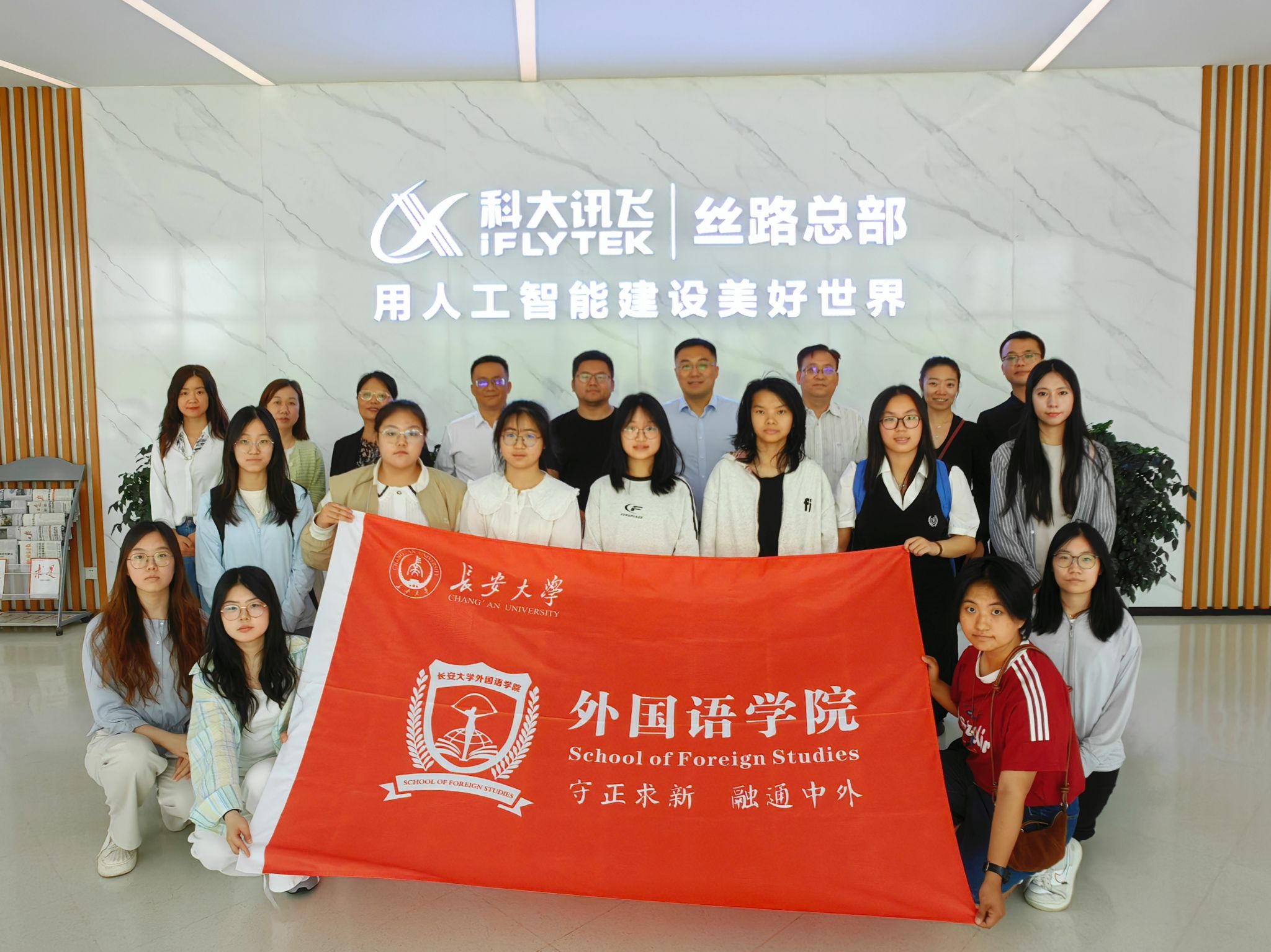為貫徹落實黨中央、國務院關于高校畢業生就業工作的決策部署,拓寬學生就業渠道,結合時代需要精準對接市場人才需求,5月9日,外國語學院黨委書記張永、院長馮正斌帶隊,黨委副書記勾小群、英語系主任趙斌、日語系主任韓春娟、院辦主任楊光、外國語言文學教育中心主任茹英、團委書記楊文佳及11名學生一行赴科大訊飛絲路總部開展“逐夢職場企業行”訪企拓崗專項行動,雙方就人工智能賦能外語人才培養、校企協同育人等議題達成深度合作意向。