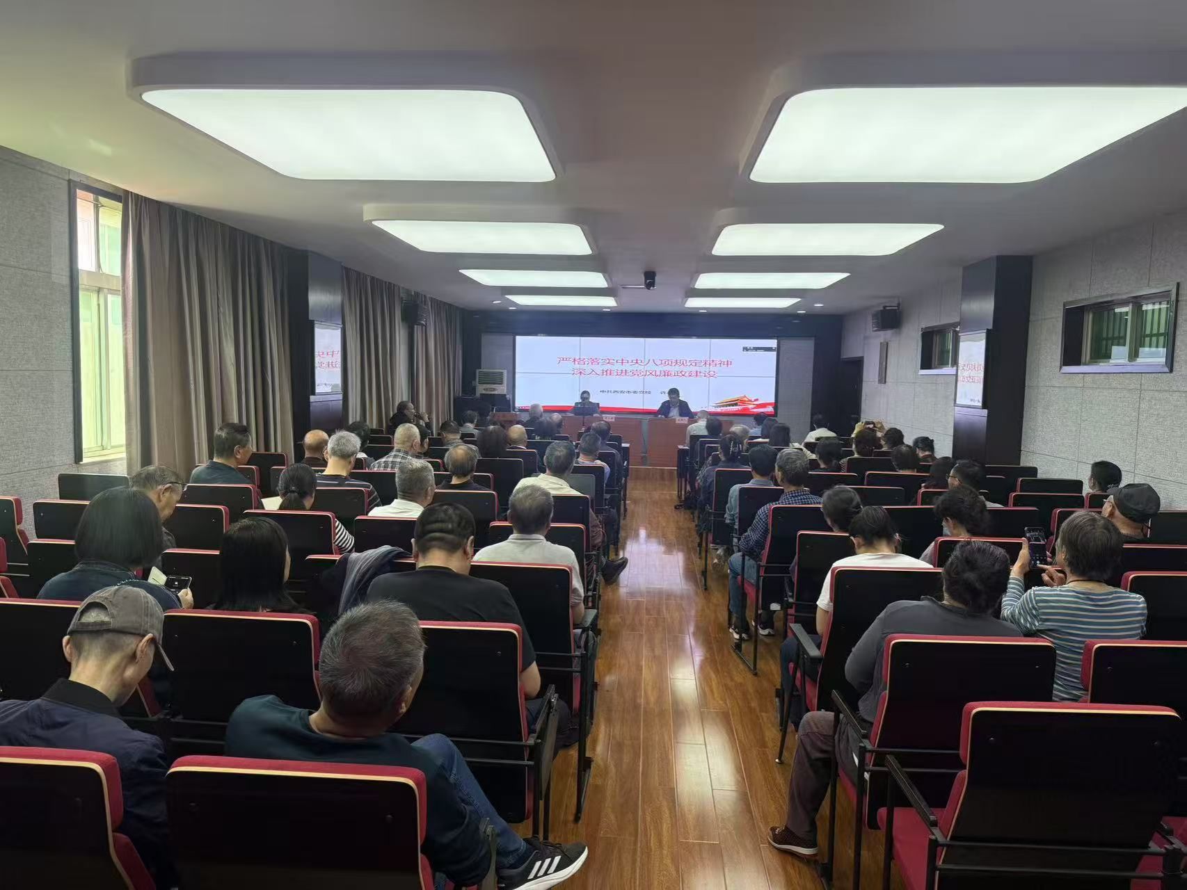 報告會邀請中共西安市委黨校教授許小嬋以《嚴格落實中央八項規定精神 深入推進黨風廉政建設》為題作報告。報告圍繞全面把握中央八項規定及其實施細則的基本精神、深入推進風腐同查同治的價值意義與內在邏輯和以改革精神和嚴的標準一體推進風腐同查同治等三個方面展開,通過詳實的數據和生動的案例,展示了作風建設取得的顯著成果,運用由風及腐案例強化警示教育,幫助大家認識落實中央八項規定精神既是作風建設的基本要求,更是推動全面從嚴治黨向縱深發展的重要舉措,只有嚴格落實中央八項規定精神,才能從根本上解決“四風”問題,維護黨的先進性和純潔性。專題報告理論深刻、實踐指導并重,是對中央八項規定精神的一次再學習、再動員。