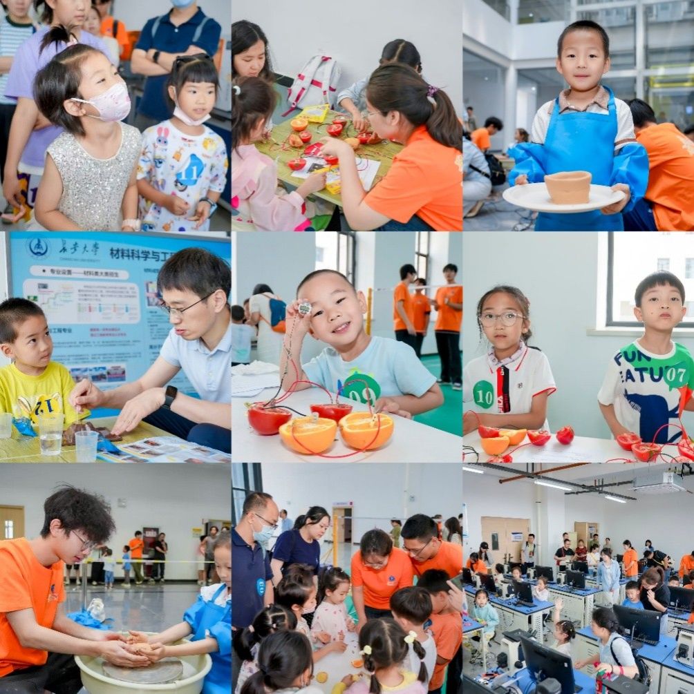 孩子們身著藍(lán)色實(shí)驗(yàn)服,在教授、學(xué)生志愿者和家長(zhǎng)的陪伴下,穿梭于五大主題實(shí)驗(yàn)室。活動(dòng)現(xiàn)場(chǎng),每一個(gè)實(shí)驗(yàn)環(huán)節(jié)都暗含著濃濃的思政深意,陶藝創(chuàng)作中,可再生黏土化作“綠色藝術(shù)品”,孩子們捏塑的不僅是陶罐,更是對(duì)“生態(tài)文明”的初體驗(yàn);3D打印工坊里,神話人物“哪吒”的風(fēng)火輪與現(xiàn)代鈦合金技術(shù)碰撞,傳統(tǒng)文化與科技創(chuàng)新的融合悄然扎根;顯微鏡前,金屬晶粒的微觀世界揭開(kāi)面紗,嚴(yán)謹(jǐn)求實(shí)的科研精神在孩子們專(zhuān)注的眼神中萌芽。