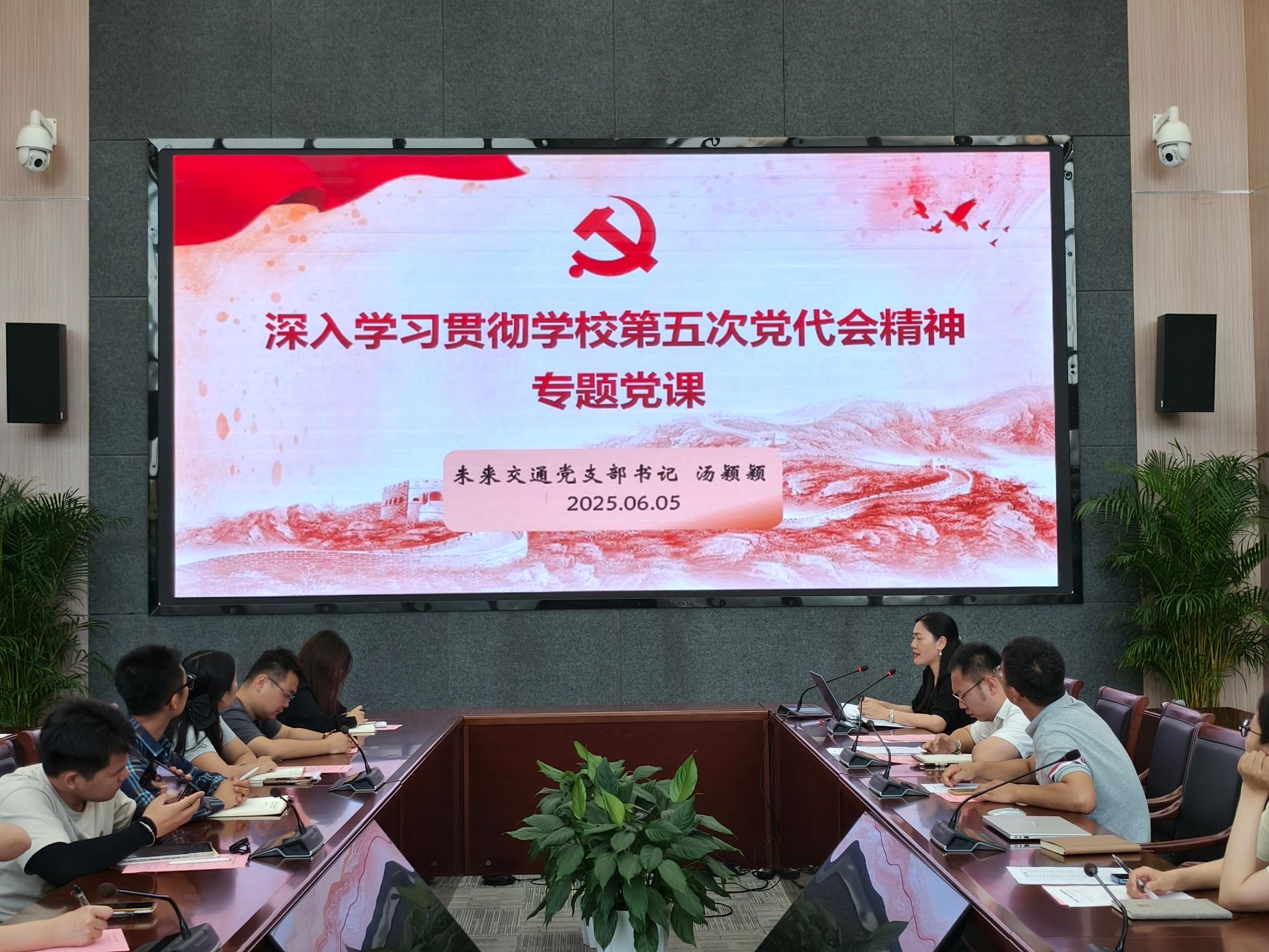 為學深悟透學校第五次黨代會精神,推動教育教學工作高質量發展,6月5日下午,未來交通黨支部組織開展專題黨課學習活動,學院領導班子成員、各系負責人、科級干部以及黨支部全體師生黨員參加學習,黨課由學院副院長、未來交通黨支部書記湯穎穎主講。