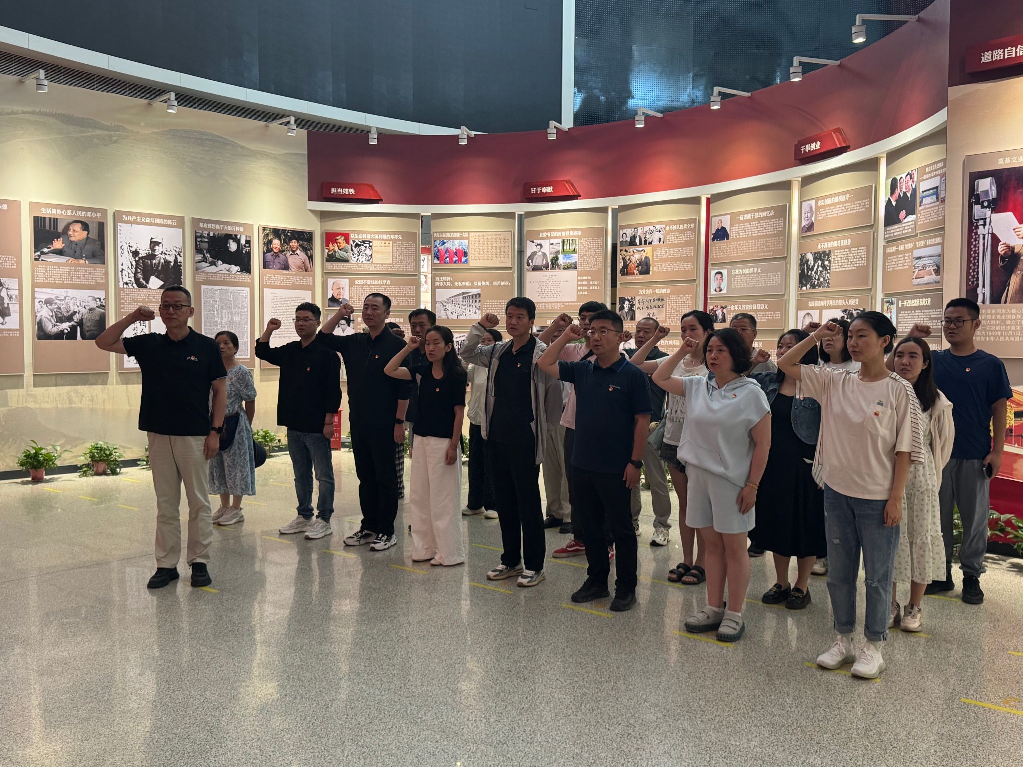 在渭南市博物館,同志們圍繞《清風彌萬世,廉韻潤秦東—渭南廉政文化主題展》《奮斗之路主題教育展》兩大主題展進行了深入研學,了解了從古至今的廉政建設傳承,以及渭南人民在黨的領導下開展革命斗爭、投身社會主義建設、推動改革開放的奮斗歷程,感受廉潔精神與奮斗精神。最后,全體黨員莊嚴肅立,面向黨旗齊聲重溫入黨誓詞,鏗鏘有力的誓言回蕩在展廳。
