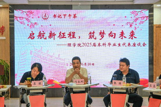 為進一步發(fā)揮優(yōu)秀學生的榜樣引領作用,聽取畢業(yè)生意見建議,6月10日下午,理學院在朝暉園團體活動室召開“啟航新征程,筑夢向未來”2025屆本科畢業(yè)生代表座談會。學院黨委書記閆永剛、黨委副書記屈穎,教師黨支部書記代表包雄雄、石垚、張博、姬楠楠及全體本科生輔導員參加會議,座談會由畢業(yè)生輔導員楊雪菲主持。