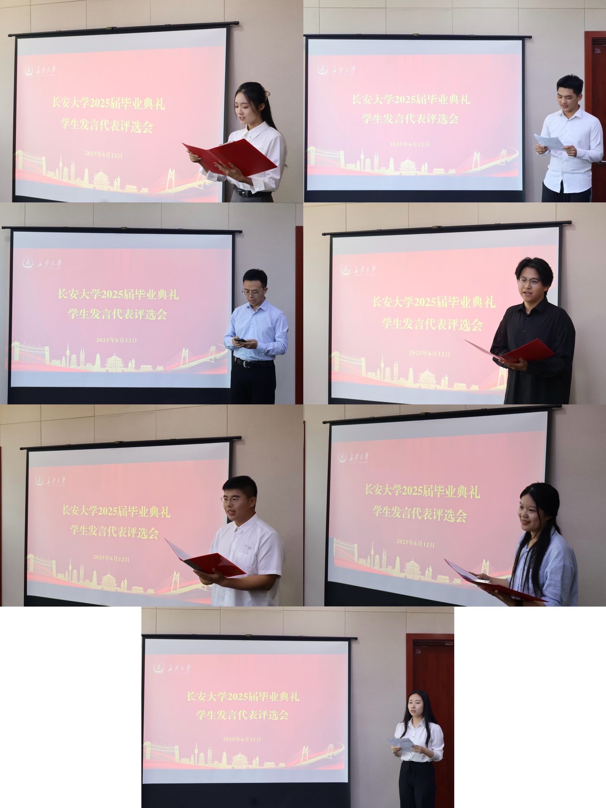 根據(jù)《關(guān)于做好長安大學(xué)2025年畢業(yè)生離校教育工作的通知》安排,本次選拔工作自5月底啟動,經(jīng)個人報名、學(xué)院推薦、部門審核等程序,學(xué)工部、研工部前期對27名推薦的畢業(yè)生進(jìn)行了初選,共有7名畢業(yè)生脫穎而出參加了本次評選會。各位畢業(yè)生結(jié)合個人學(xué)習(xí)、生活和工作經(jīng)歷,或慷慨激昂,或飽含深情,分享了在長安大學(xué)踐行長大精神、矢志拼搏奮斗的成長故事,表達(dá)了對學(xué)校和師長悉心培育的感恩之情,表達(dá)了到黨和人民最需要的地方建功立業(yè)的人生志向,充分展現(xiàn)了我校畢業(yè)生有理想、敢擔(dān)當(dāng)、能吃苦、肯奮斗的優(yōu)秀品質(zhì)和精神風(fēng)貌。