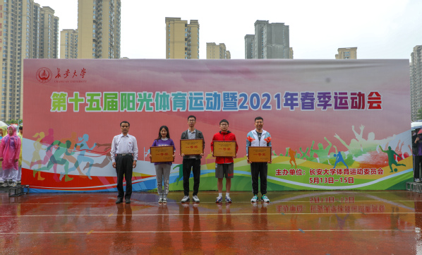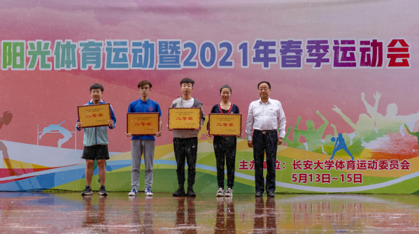 校領導為獲獎單位和運動員代表頒獎。經濟與管理學院、建筑工程學院、水利與環境學院、運輸工程學院獲“一等獎”;信息工程學院、汽車學院、電子與控制工程學院、工程機械學院獲“二等獎”;公路學院、建筑學院、地質工程與測繪學院、材料科學與工程學院、地球科學與資源學院、馬克思主義學院、人文學院、土地工程學院、長安都柏林國際交通學院、理學院、外國語學院、學工部、國際教育學院獲“三等獎”。水利與環境學院、經濟與管理學院、信息工程學院、運輸工程學院、外國語學院、馬克思主義學院、建筑學院、土地工程學院獲“體育道德風尚獎。