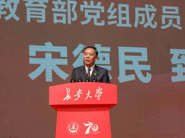教育部黨組成員、副部長(zhǎng)宋德民在致辭中說,長(zhǎng)安大學(xué)是一所擁有悠久辦學(xué)歷史和深厚文化底蘊(yùn)的高等學(xué)府,為國(guó)家培養(yǎng)了大批專門人才,已成為我國(guó)西部地區(qū)人才培養(yǎng)和高水平科學(xué)研究的重要基地。希望長(zhǎng)安大學(xué)堅(jiān)持和加強(qiáng)黨的全面領(lǐng)導(dǎo),牢牢把握社會(huì)主義辦學(xué)方向,切實(shí)落實(shí)立德樹人根本任務(wù),堅(jiān)定不移地走特色發(fā)展之路,不斷提高報(bào)國(guó)強(qiáng)國(guó)能力,在建設(shè)高等教育強(qiáng)國(guó)、培養(yǎng)德智體美勞全面發(fā)展的社會(huì)主義建設(shè)者和接班人、服務(wù)國(guó)家重大戰(zhàn)略需求中發(fā)揮更大作用、作出更大貢獻(xiàn)。