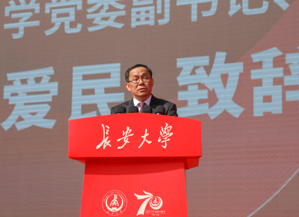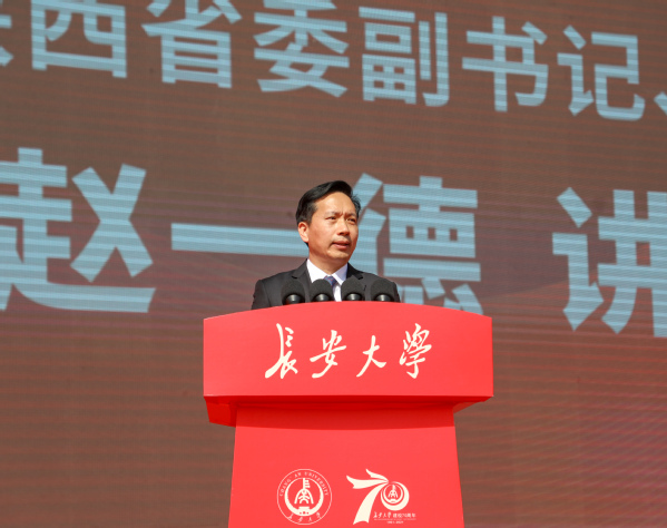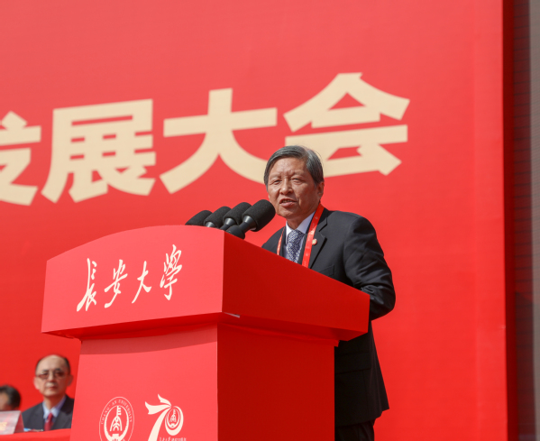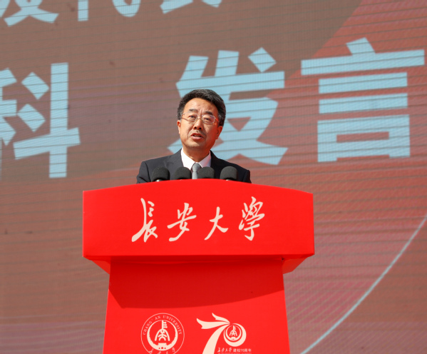 中共陜西省委副書記、陜西省省長(zhǎng)趙一德對(duì)長(zhǎng)安大學(xué)建校70周年和大會(huì)的召開表示祝賀。他說,70年來,長(zhǎng)安大學(xué)主動(dòng)融入國(guó)家重大發(fā)展戰(zhàn)略,充分發(fā)揮在公路交通、國(guó)土資源、城鄉(xiāng)建設(shè)三大領(lǐng)域的專業(yè)優(yōu)勢(shì),積極服務(wù)地方經(jīng)濟(jì)社會(huì)建設(shè),為國(guó)家、為西部特別是陜西發(fā)展作出了重要貢獻(xiàn)。希望長(zhǎng)安大學(xué)深入貫徹落實(shí)習(xí)近平總書記關(guān)于教育的重要論述和黨中央關(guān)于高等教育發(fā)展的戰(zhàn)略部署,牢記立德樹人根本任務(wù),進(jìn)一步聚力高層次人才培養(yǎng),創(chuàng)新育人方式,豐富育人載體,加快培育造就具有國(guó)際競(jìng)爭(zhēng)力的高層次人才隊(duì)伍。進(jìn)一步聚力高水平科學(xué)研究,深化教育改革,加強(qiáng)機(jī)制創(chuàng)新,突破形成更多從0到1的原創(chuàng)性創(chuàng)新成果。進(jìn)一步聚力高質(zhì)量社會(huì)服務(wù),將更多科研成果轉(zhuǎn)化為產(chǎn)品、發(fā)展為產(chǎn)業(yè),為陜西加快教育強(qiáng)省建設(shè)和推動(dòng)高質(zhì)量發(fā)展作出新的更大貢獻(xiàn)。