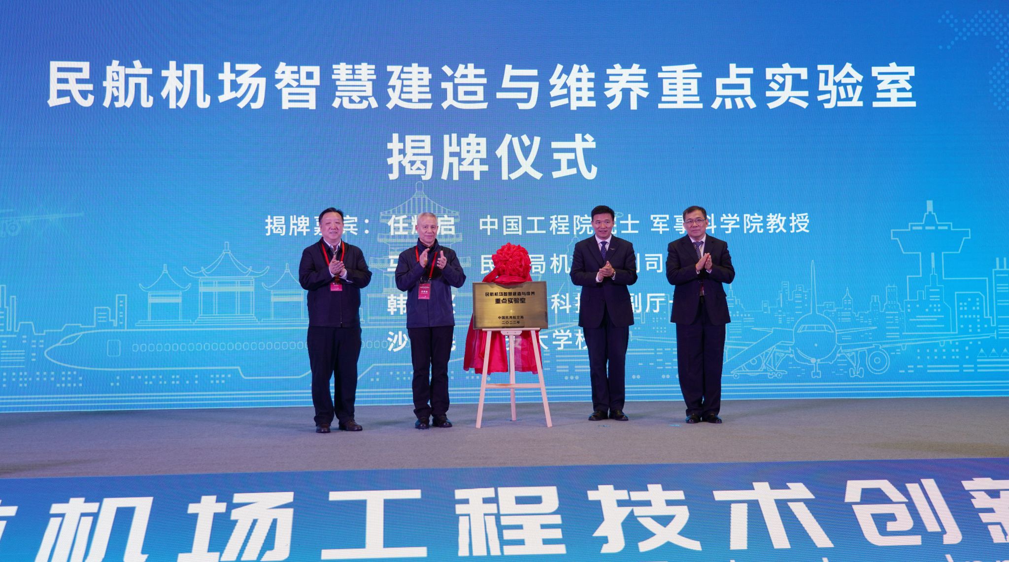 開幕式上,任輝啟、馬志剛、韓開興和沙愛民共同為長安大學牽頭組建的“民航機場智慧建造與維養重點實驗室”揭牌,為共建單位代表授牌。