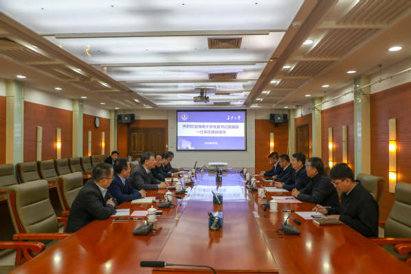 4月7日,海南大學(xué)黨委書記武耀廷,我校掛職干部、副校長范文一行5人來我校交流調(diào)研。黨委書記陳志堅(jiān)、校長沙愛民在貴賓廳會見了武耀廷一行,校黨委副書記、副校長彪曉紅,校黨委副書記徐引正陪同會見。