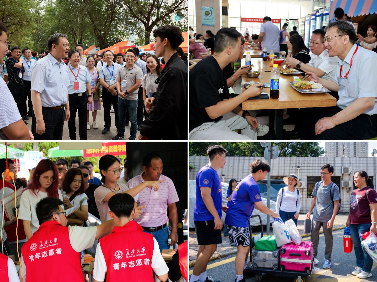 迎新期間,相關校領導以及職能部門負責人深入迎新報到現場、學生食堂和新生宿舍,詳細了解新生報到情況,慰問一線工作人員,并與家長和學生親切交流。