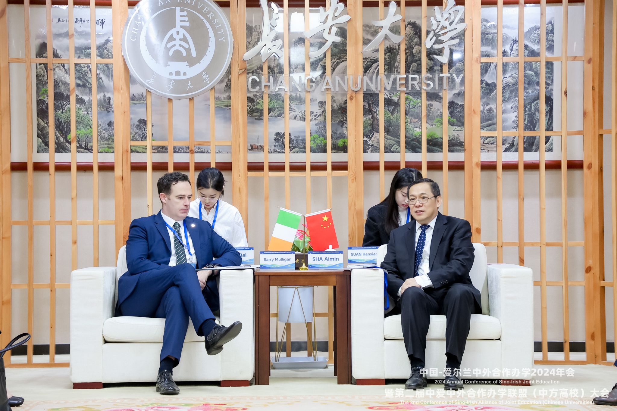 沙愛民對睦百瑞一行的到來表示熱烈歡迎,對愛爾蘭大使館及各方機構對長安大學的支持表示感謝。他從學校辦學歷史、學科建設、學生培養與中愛合作辦學情況等進行了簡要介紹。他希望長安大學與愛爾蘭以中外合作辦學為抓手,進一步強化交流合作,為中愛兩國高等教育的未來發展探索新方法、開辟新路徑、構建新格局,努力成為中愛教育合作交流的典范。