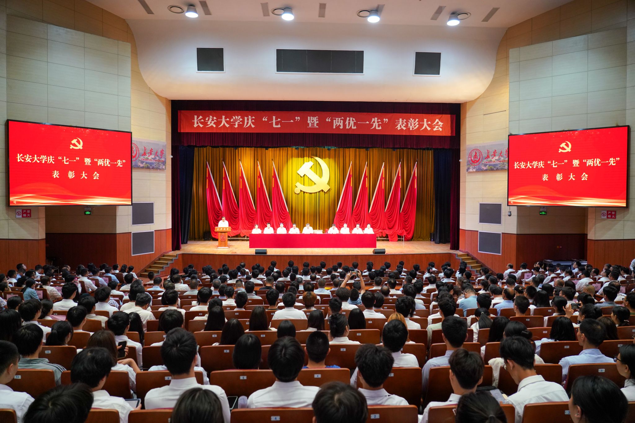 在中國(guó)共產(chǎn)黨104周年華誕之際,6月25日,長(zhǎng)安大學(xué)慶“七一”暨“兩優(yōu)一先”表彰大會(huì)在北校區(qū)長(zhǎng)安文化藝術(shù)中心大禮堂隆重舉行。黨員校領(lǐng)導(dǎo)、黨委常委、各單位黨政主要負(fù)責(zé)人、受表彰的“兩優(yōu)一先”代表、教工黨員代表和學(xué)生黨員代表等800余人參加大會(huì)。大會(huì)由黨委副書記、校長(zhǎng)沙愛民主持。