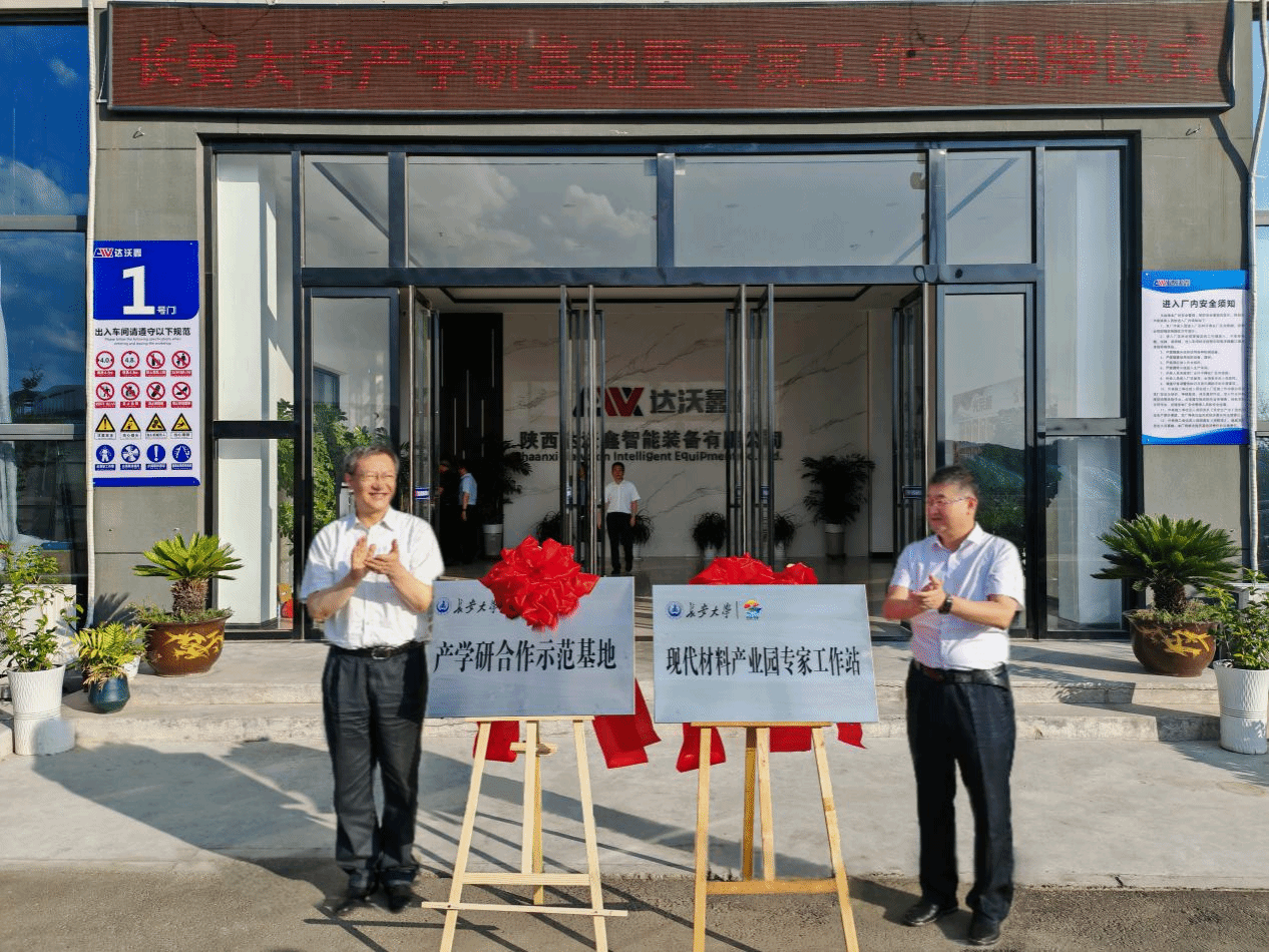 在商南縣現代材料產業園,陳志堅和徐江博為長安大學產學研合作基地和專家工作站揭牌,并實地調研了產業園和專家工作站建設情況。