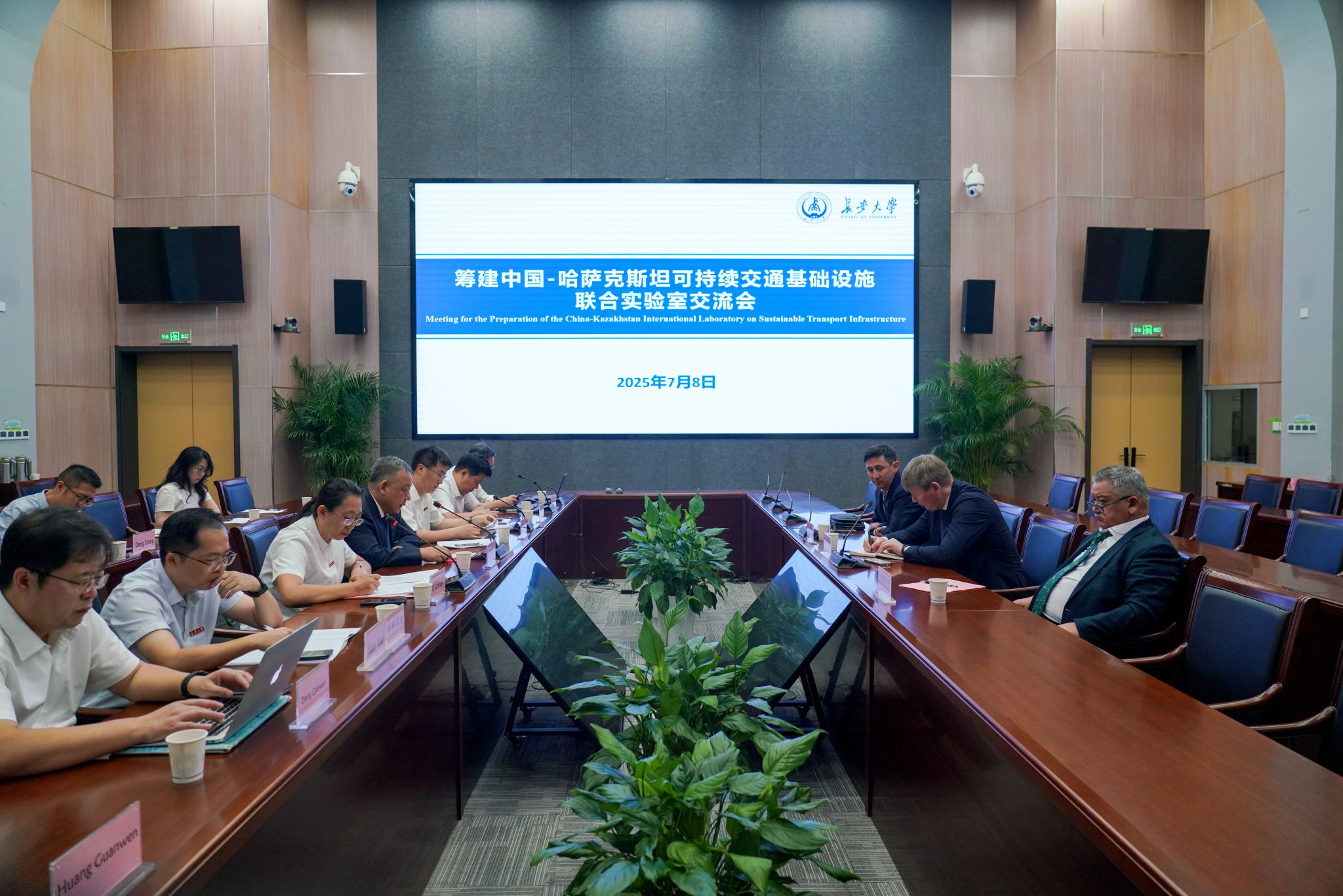 沙愛民代表學校對Zholdas Buribayev一行來校交流表示歡迎,并簡要介紹了學校辦學概況。他指出,長安大學在交通運輸、國土資源和城鄉(xiāng)建設等領域具有顯著優(yōu)勢,多項科研成果應用于國內(nèi)外重大工程建設并發(fā)揮了重要作用;他表示,兩校學科專業(yè)契合,具有廣闊的合作前景,期待通過共建科研平臺,建立溝通機制,互學互鑒、共進共贏,并希望雙方在原有合作基礎上,增進交流,擴大合作領域、創(chuàng)新合作模式,推動中哈交通科技合作邁入新階段,為服務“中國-中亞命運共同體”建設和區(qū)域互聯(lián)互通提供科技支撐。