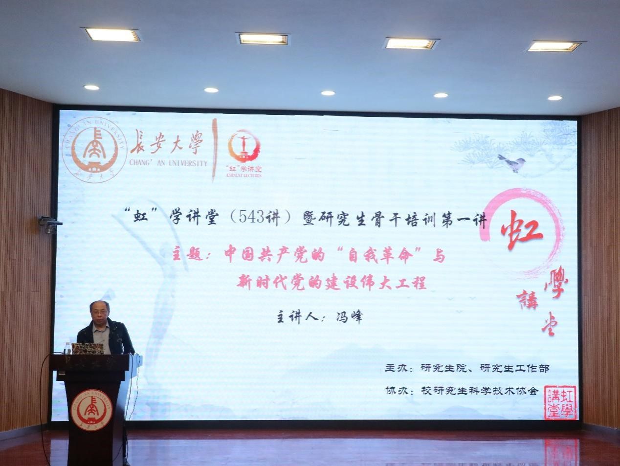 4月11日下午,由研究生院、研究生工作部主辦,校研究生科學技術協會協辦的“虹”學講堂第543講暨研究生骨干培訓第一講以線上線下相結合的形式舉辦。長安大學馮峰教授作了題為“中國共產黨的‘自我革命’與新時代黨的建設偉大工程”的報告,相關學院共280余名師生參加講座。