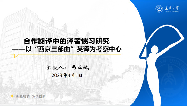 研討會秉持“文化為經,翻譯為緯,跨越時空,融通中外”的宗旨,積極促進學術交流,旨在擴衍文化翻譯研究的深度與廣度。會上,馮正斌教授做了題為“合作翻譯中的譯者慣習研究——以“西京三部曲”英譯為考察中心”的主旨報告。報告以胡宗鋒與羅賓·吉爾班克“西京三部曲”的合譯活動為案例,依托社會學理論探討二人譯者慣習的形塑過程及其對合譯活動的影響,并從中歸納文學譯介經驗,以期鏡鑒相關領域研究縱深發展。其他專家學者圍繞“交流互鑒是文明發展的本質要求”的理念,從詩詞文化、飲食文化、地域語言文化等方面展開專題分享,對新時代背景下我國文化翻譯問題進行深入剖析,拓展了我國文化翻譯研究維度。
