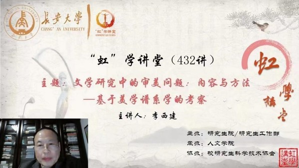 3月13日晚,由研究生院/研究生工作部主辦、人文學院承辦、校研究生科學技術協會協辦的“虹”學講堂第432講以線上講座形式順利舉辦。陜西師范大學李西建教授作了題為“文學研究中的審美問題:內容與方法——基于美學譜系學的考察”的報告,相關學院共280余名師生參加講座。