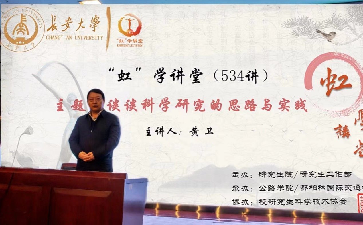 3月17日下午,由研究生院、研究生工作部主辦,公路學院承辦,校研究生科學技術協會協辦的“虹”學講堂第534講在北校區會議中心二樓報告廳舉行。中國工程院院士黃衛作題為“談談科學研究的思路與實踐”的報告,副校長裴建中主持報告會,相關學院共500余名師生參加講座。