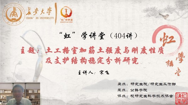 11月25日晚,由研究生院/研究生工作部主辦、公路學(xué)院承辦、校研究生科學(xué)技術(shù)協(xié)會協(xié)辦的“虹”學(xué)講堂第404講以線上講座形式順利舉辦。長安大學(xué)宋飛教授作了題為“土工格室加筋土強(qiáng)度與剛度性質(zhì)及支護(hù)結(jié)構(gòu)穩(wěn)定分析研究”的報告,相關(guān)學(xué)院共350余名師生參加講座。