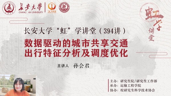 11月2日下午,由研究生院/研究生工作部主辦、運(yùn)輸工程學(xué)院承辦、校研究生科學(xué)技術(shù)協(xié)會協(xié)辦的“虹”學(xué)講堂第394講以線上講座形式順利舉辦。北京交通大學(xué)孫會君教授作了題為“數(shù)據(jù)驅(qū)動的城市共享交通出行特征分析及調(diào)度優(yōu)化”的報(bào)告,相關(guān)學(xué)院共300余名師生參加講座。