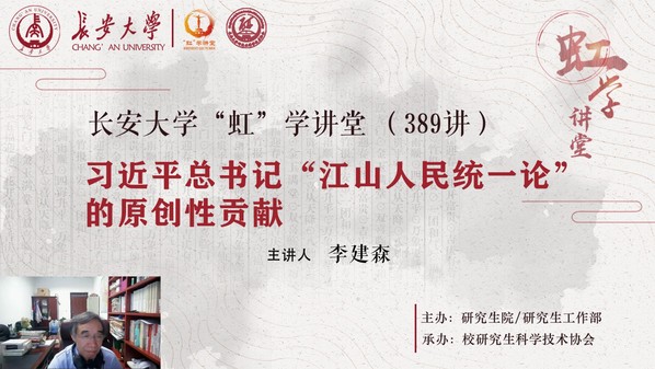 7月15日晚,由研究生院/研究生工作部主辦、校研究生科學技術協(xié)會承辦的“虹”學講堂第389講以線上講座形式順利舉辦。西北大學李建森教授作了題為“習近平總書記‘江山人民統(tǒng)一論’的原創(chuàng)性貢獻”的報告,相關學院共180余名師生參加講座。