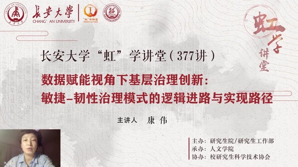 5月28日晚,由研究生院/研究生工作部主辦、人文學(xué)院承辦、校研究生科學(xué)技術(shù)協(xié)會(huì)協(xié)辦的“虹”學(xué)講堂第377講以線上講座形式順利舉辦。天津師范大學(xué)康偉教授作了題為“數(shù)據(jù)賦能視角下基層治理創(chuàng)新:敏捷-韌性治理模式的邏輯進(jìn)路與實(shí)現(xiàn)路徑”的報(bào)告,相關(guān)學(xué)院共300余名師生參加講座。