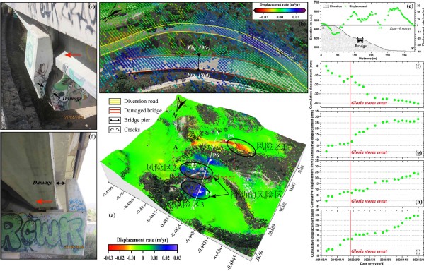 2022年4月初,西班牙東南部Alcoy市連續強降雨,誘發了該市圣地亞哥公園區大型滑坡出現多次局部滑動,摧毀一座橋梁、威脅多座居民樓和一個工廠的安全。在該滑坡發生前的10個月,我校張勤教授研究團隊與西班牙阿利坎特RobertoTomás教授團隊合作,利用合成孔徑雷達干涉測量技術(InSAR),采用德國TerraSAR-X與西班牙PAZ雷達數據對西班牙Alcoy全市進行了地質災害早期識別與動態監測,成功探測出41個地質災害隱患點,結合現場調查劃定了三個滑坡高風險區,并對風險區采用InSAR技術進行了動態跟蹤監測,最終成功捕獲到異常形變現象。相關研究成果在滑坡發生前多次提交給Alcoy市政管理部門,有效指導該滑坡災害的管理及防災減災工作,避免了人員傷亡與經濟損失。
