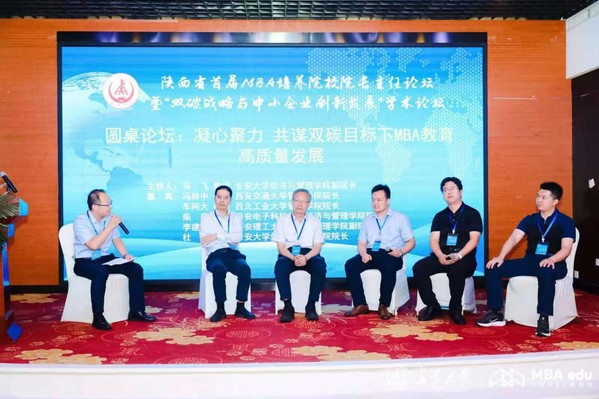 要實現“雙碳目標”,離不開經濟結構的調整和發展方式的轉型升級。特別是MBA教育如何精準地服務碳達峰這一目標、賦能碳達峰過程中的具體實踐路徑,是MBA教育當下亟需思考和解決的重要議題。西安交通大學MBA教育中心主任葛京教授、西北農林科技大學經濟管理學院院長夏顯力教授、西安工程大學管理學院副院長王淵教授和新道科技有限公司西北大區總經理張桐先生分別以“以賽事+課程共建,提升MBA學生綜合能力”“雙碳目標下經濟社會發展轉型與MBA創新發展”“豐富扎實保質量、項目嫁接顯特色”“數智科技賦能MBA教育”為題對上述問題進行了有益的探索與交流;在隨后的圓桌論壇上,多所院校專家學者就“凝心聚力,共謀雙碳目標下MBA教育高質量發展”這一主題發表觀點,建言獻策。