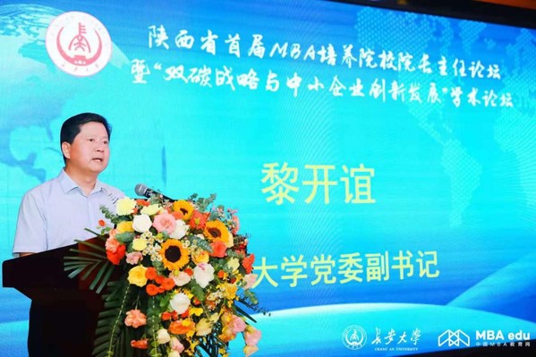 開幕式上,長安大學黨委副書記黎開誼代表學校對論壇的召開表示祝賀并致辭,他首先對全國MBA教育指導委員會及兄弟院校對我校MBA項目的關心與支持表示衷心感謝,對我校在MBA辦學十周年歷程中取得的變化與成績進行了充分肯定,希望值此長安大學建校70周年之際,借此盛會不斷將我校MBA教育事業推向新的高度;希望此次會議能夠在強化使命驅動、打破教育邊界、整合教育資源、共創教育生態、共同探索新的MBA培養模式,為服務“雙碳”目標等國家重大戰略需求,面向行業及產業當前及未來人才重大需求等方面做出有益地、積極地探索。