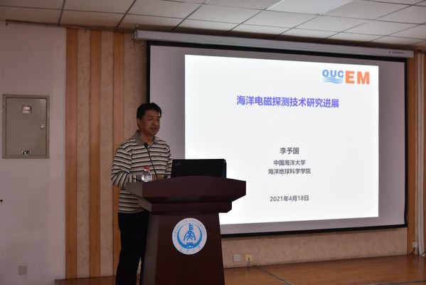 中國海洋大學李予國教授的報告主要圍繞自身求學經歷和海洋電磁探測技術研究進展兩方面展開。李予國教授從在長安大學求學的經歷開始講起,深情表達了對母校的懷念和感謝,用自己學習、鍛煉的經歷敦促在場學生要加強身體鍛煉,身體是基礎,擁有強健的體魄才能進行更好的學習;其次講述了海洋電磁探測的原理、儀器等相關內容,指出復雜起伏的海底地形能夠對海洋電磁資料產生嚴重的畸變影響,因此在進行資料解釋時必須要將地形影響考慮在內;李予國教授用具體的數據論證了海水是非常好的良導體,所以海洋電磁場數值模擬方法必須面對由海水和海底地質體之間巨大電阻率差異所產生的數值困難;最后結合自己從數值模擬轉向儀器制作的經歷,說明理論再扎實,沒有優秀的儀器將理論付諸實施是遠遠不夠的,并強調了研究制造國產儀器的必要性。