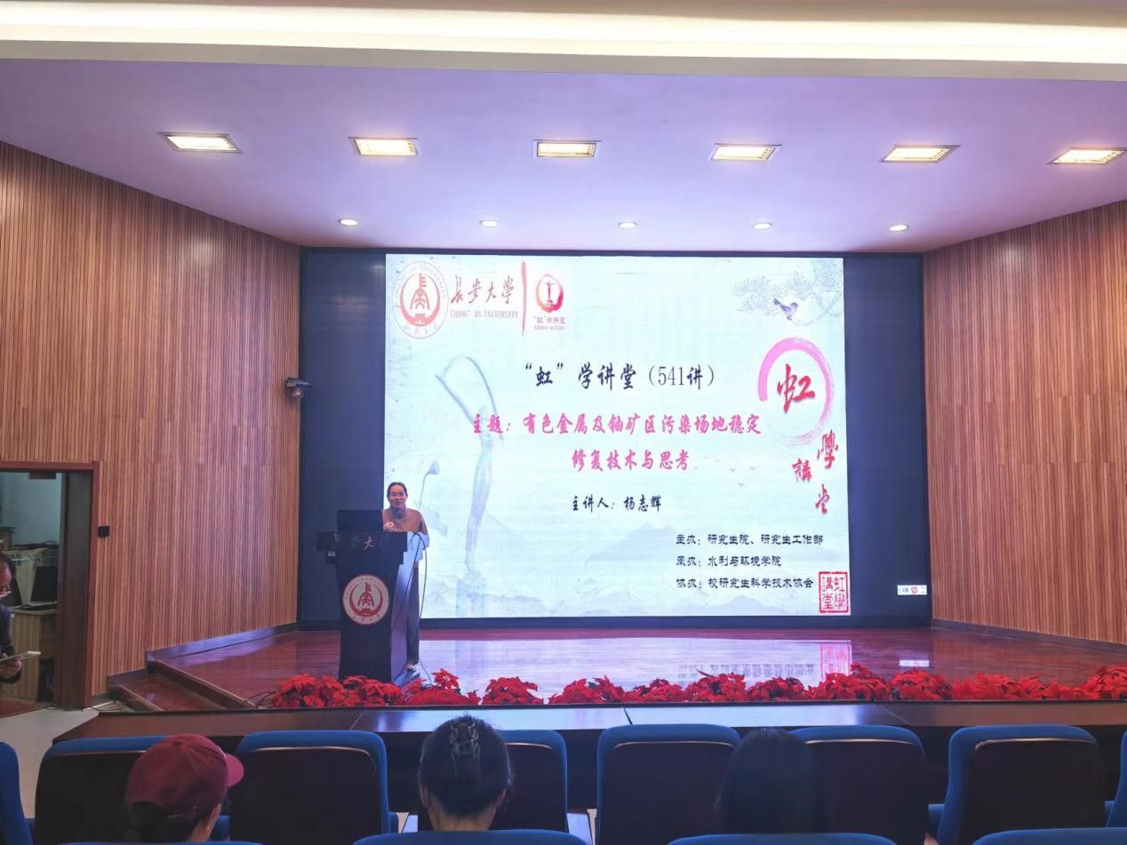 4月8日上午,由研究生院、研究生工作部主辦,水利與環境學院承辦,校研究生科學技術協會協辦的“虹”學講堂第541講在南校區東院伯聲報告廳舉辦。中南大學楊志輝教授作了題為“有色金屬及鈾礦區污染場地穩定修復技術與思考”的報告,相關學院共160余名師生參加講座。