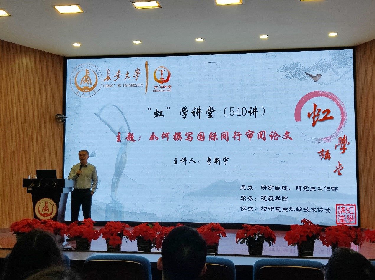 3月29日上午,由研究生院、研究生工作部主辦,建筑學院承辦,校研究生科學技術協會協辦的“虹”學講堂第540講在南校區東院伯聲報告廳舉辦。明尼蘇達大學曹新宇教授作了題為“如何撰寫國際同行審閱論文”的報告,建筑學院侯全華教授主持,相關學院共180余名師生參加講座。