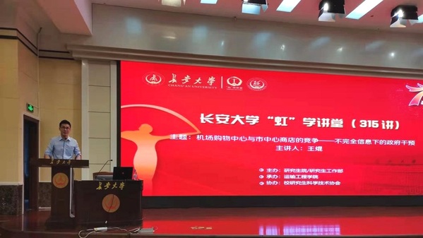 9月29日下午,由研究生院/研究生工作部主辦、運(yùn)輸工程學(xué)院承辦、校研究生科學(xué)技術(shù)協(xié)會協(xié)辦的“虹”學(xué)講堂第315講在南校區(qū)北院學(xué)術(shù)交流中心一樓報(bào)告廳順利舉辦。對外經(jīng)濟(jì)貿(mào)易大學(xué)副教授、Transport Policy副主編王焜作了題為“機(jī)場購物中心與市中心商店的競爭——不完全信息下的政府干預(yù)”的報(bào)告,我校相關(guān)學(xué)院共計(jì)100名師生參加了此次講座。
