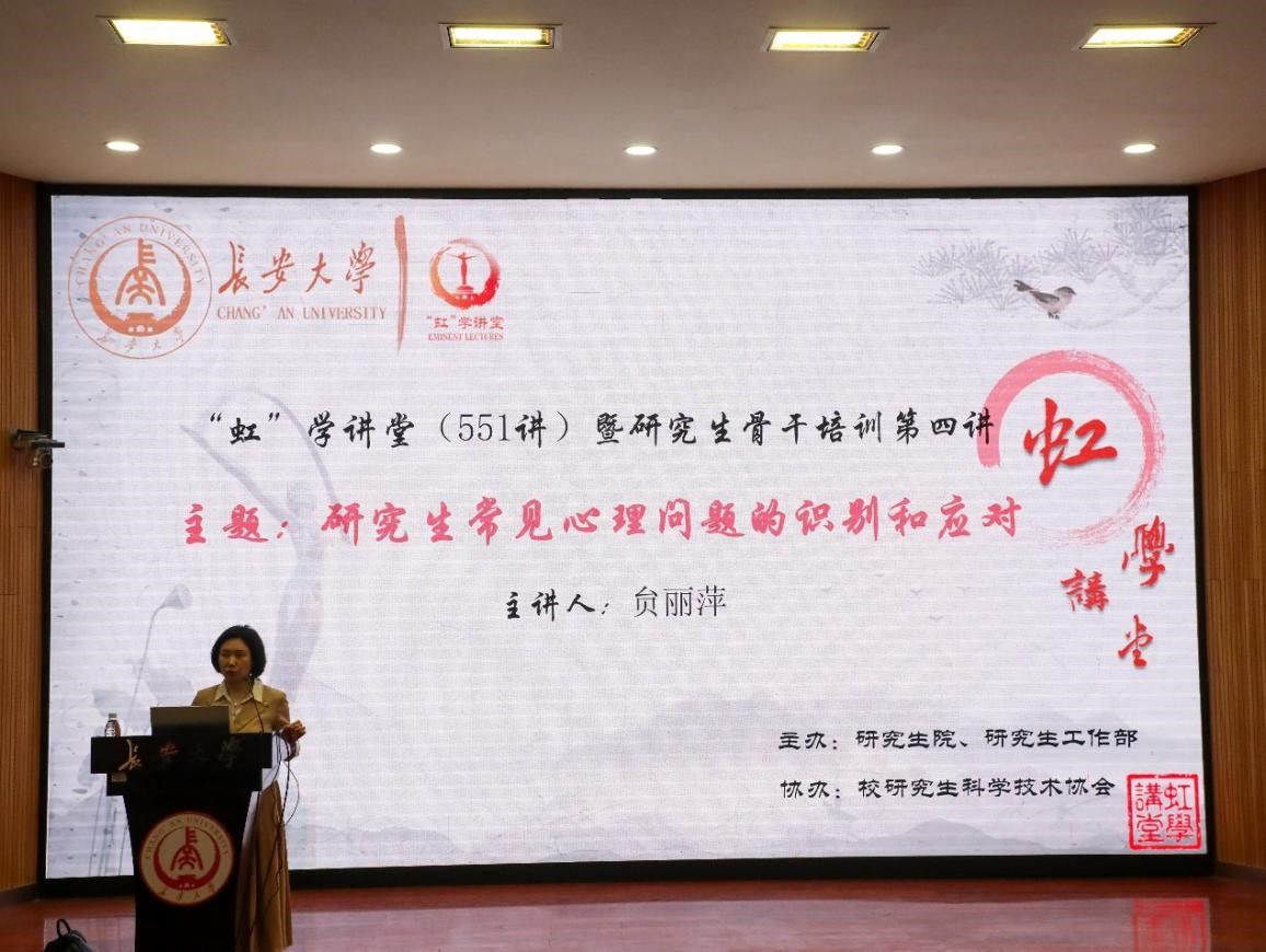 4月25日下午,由研究生院、研究生工作部主辦,校研究生科學技術協會承辦的“虹”學講堂第551講暨研究生骨干培訓第四講以線上線下相結合的形式舉辦。長安大學贠麗萍副教授作題為“研究生常見心理問題的識別和應對”的報告,相關學院共280余名師生參加講座。