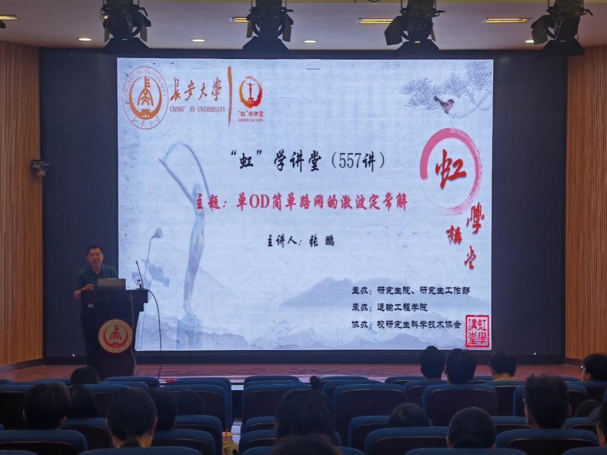 5月9日下午,由研究生院、研究生工作部主辦,運(yùn)輸工程學(xué)院承辦,校研究生科學(xué)技術(shù)協(xié)會協(xié)辦的“虹”學(xué)講堂第557講在南校區(qū)東院伯聲報告廳舉辦。上海大學(xué)張鵬教授作題為“單OD簡單路網(wǎng)的激波定常解”的報告,相關(guān)學(xué)院共180余名師生參加講座。