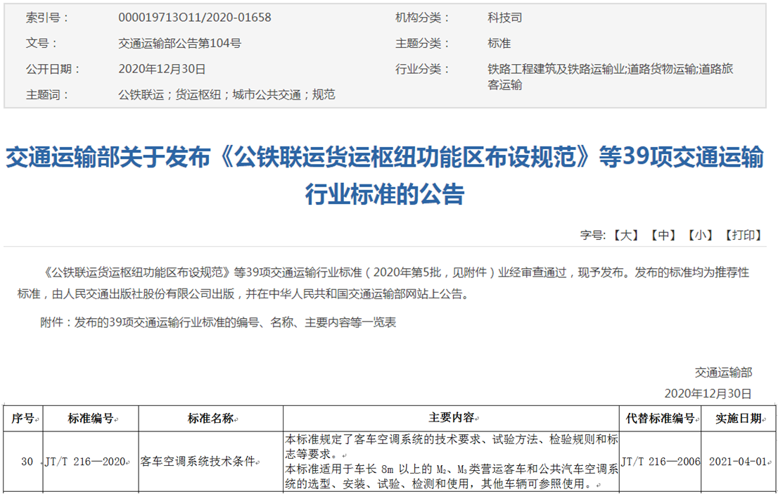 12月30日,交通運輸部批準(zhǔn)發(fā)布了由我校汽車學(xué)院郭金剛、申福林和李兆凱老師牽頭修訂的JT/T216《客車空調(diào)系統(tǒng)技術(shù)條件》標(biāo)準(zhǔn),該標(biāo)準(zhǔn)將于2021年4月1日起正式實施。