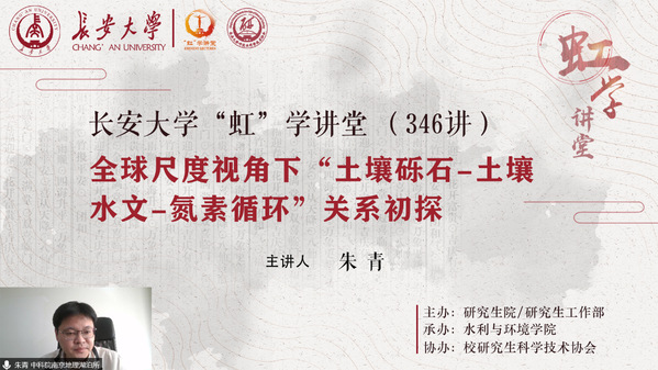3月10日下午,由研究生院/研究生工作部主辦、水利與環(huán)境學院承辦、校研究生科學技術(shù)協(xié)會協(xié)辦的“虹”學講堂第346講以線上講座形式順利舉辦。中科院南京地理與湖泊研究所朱青研究員作了題為“全球尺度視角下‘土壤礫石-土壤水文-氮素循環(huán)’關系初探”的報告,水環(huán)學院羅平平教授主持,相關學院共計300余名師生參加。