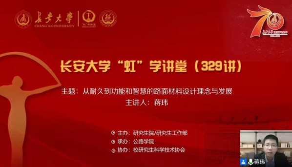 11月30日下午,由研究生院/研究生工作部主辦、公路學院承辦、校研究生科學技術協會協辦的“虹”學講堂第329講以線上講座形式順利舉辦。我校蔣瑋教授作了題為“從耐久到功能和智慧的路面材料設計理念與發展”的報告,相關學院共400余名師生聆聽了講座。