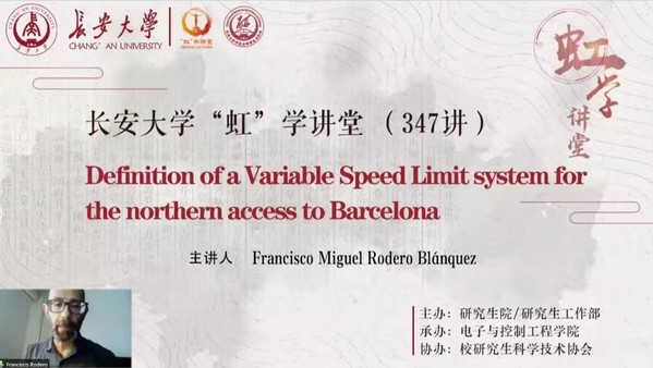 3月15日下午,由研究生院/研究生工作部主辦、電子與控制工程學(xué)院承辦、校研究生科學(xué)技術(shù)協(xié)會協(xié)辦的“虹”學(xué)講堂第347講以線上形式舉行。西班牙加泰羅尼亞理工大學(xué)交通創(chuàng)新中心(CENIT)智能交通系統(tǒng)經(jīng)理Francisco Miguel Rodero Blánquez以“巴塞羅那北部通道可變限速系統(tǒng)的定義(Definition of a Variable Speed Limit system for the northern access toBarcelona)”為題作報告。電控學(xué)院教師林杉主持本場講座,相關(guān)學(xué)院共420余名師生聆聽講座。
