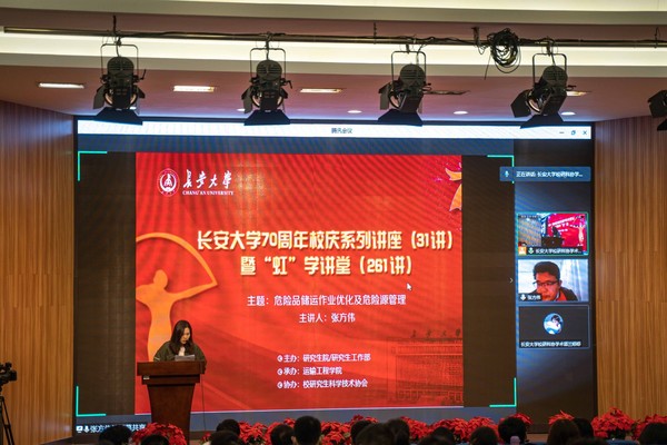 3月14日下午,由研究生院/研究生工作部主辦、運輸工程學院承辦、校研究生科學技術協會協辦的長安大學70周年校慶系列講座(31講)暨“虹”學講堂(261講)在南校區東院伯聲報告廳及線上“騰訊會議”同步舉辦。山東交通學院張方偉教授作了題為“危險品儲運作業優化及危險源管理”的報告,我校相關學院共計190余名師生參加了此次講座。