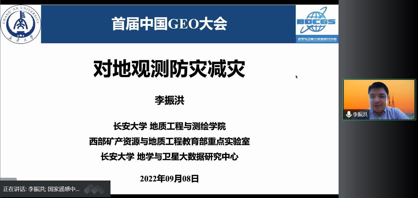 作為中國GEO大會的重要環節,長安大學協辦的主旨報告于9月8日下午線上召開,為地球觀測領域頂尖專家交流新技術、新方法、新理念、新成果提供重要平臺。國家遙感中心劉志春副主任擔任會議主持并致辭,郭華東院士、陳軍院士、岳清瑞院士、周成虎院士、賈根鎖研究員、李振洪教授和顧行發研究員等受邀作報告,中國GEO專家等400余人參加會議。