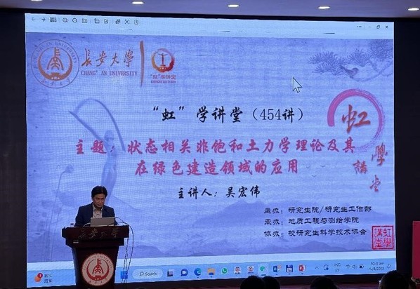 4月26日下午,由研究生院/研究生工作部主辦、地質(zhì)工程與測繪學(xué)院承辦、校研究生科學(xué)技術(shù)協(xié)會協(xié)辦的“虹”學(xué)講堂第454講在南校區(qū)東院伯聲報告廳順利舉辦。英國皇家工程院院士吳宏偉作了題為“狀態(tài)相關(guān)非飽和土力學(xué)理論及其在綠色建造領(lǐng)域的應(yīng)用”的報告,相關(guān)學(xué)院共180余名師生參加講座。