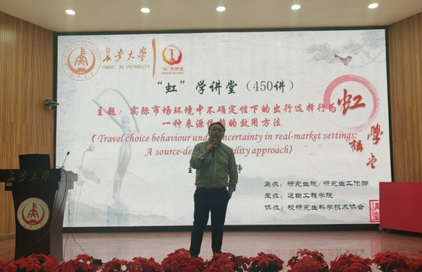 4月19日下午,由研究生院/研究生工作部主辦、運輸工程學院承辦、校研究生科學技術協會協辦的“虹”學講堂第450講在南校區東院伯聲報告廳順利舉辦。西安交通大學李錚教授作了題為“實際市場環境中不確定性下的出行選擇行為:一種來源依賴的效用方法”的報告,相關學院共180余名師生參加講座。