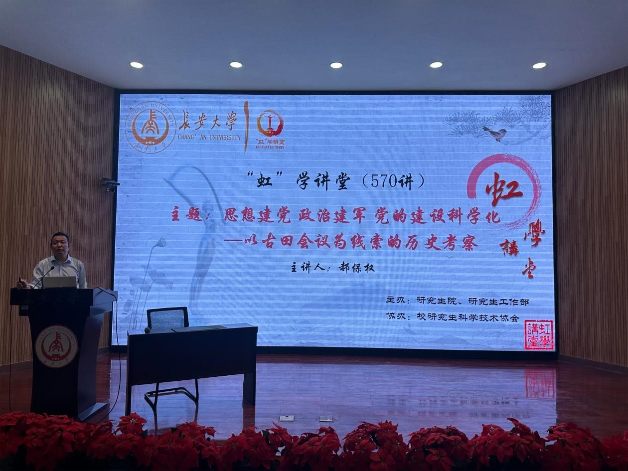 5月28日下午,由研究生院、研究生工作部主辦,校研究生科學技術協會承辦的“虹”學講堂第570講在南校區東院伯聲報告廳舉辦。西北工業大學郝保權教授作題為“思想建黨、政治建軍、黨的建設科學化——以古田會議為線索的歷史考察”的報告,各學院研究生黨支部書記參加講座。
