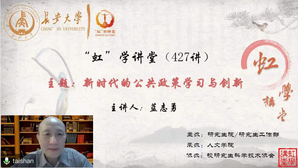 3月7日晚,由研究生院/研究生工作部主辦、人文學(xué)院承辦、校研究生科學(xué)技術(shù)協(xié)會協(xié)辦的“虹”學(xué)講堂第427講以線上講座形式順利舉辦。清華大學(xué)藍(lán)志勇教授作了題為“新時代的公共政策學(xué)習(xí)與創(chuàng)新”的報(bào)告,相關(guān)學(xué)院共300余名師生參加講座。